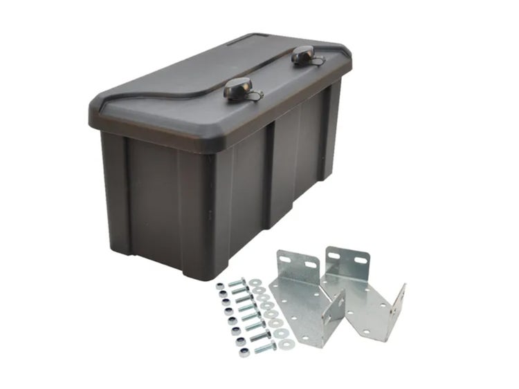 Die Kunststoff-Werkzeugkiste sorgt für Ordnung und sicheren Stauraum direkt am Anhänger. Werkzeuge und Zubehör sind jederzeit griffbereit und geschützt verstaut.